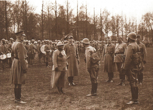 van H.F.C. te Haarlem door de Koningin en de commandant van het 1e
