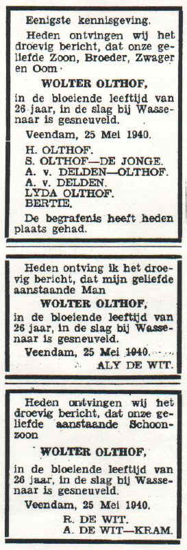 3e graf Oude Begraafplaats te Veendam, 28 mei 1940.